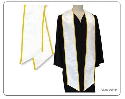 White With Gold Trimmed Graduation Stole Stoll Sash 84 Long Bridal Satin Ebay