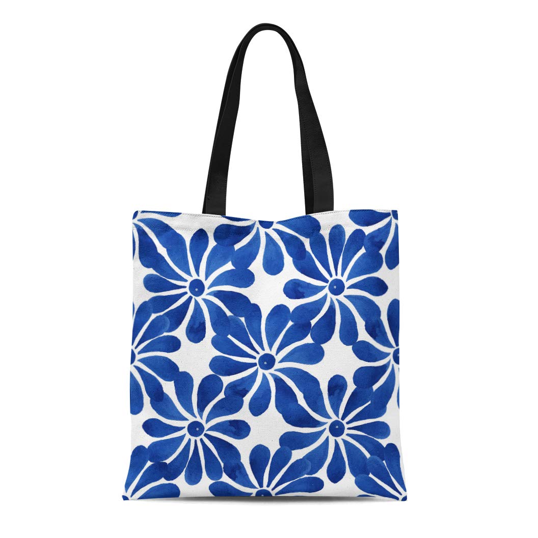 Kdagr Canvas Bag Resuable Tote Grocery Shopping Bags Pattern Floral Blue Daisy Flowers On Watercolor Ink Indigo Tote Bag Walmart Com