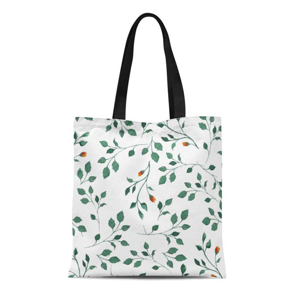 Kdagr Canvas Tote Bag Green Flowers Watercolor Floral Leaves Nature Leaf Chic White Reusable Handbag Shoulder Grocery Shopping Bags Walmart Com